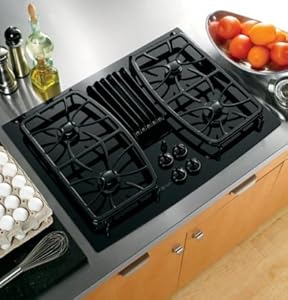 Source : GE Profile : PGP989DNBB 30 Gas Downdraft Cooktop with 400 CFM, 4 Sealed Burners - Black
